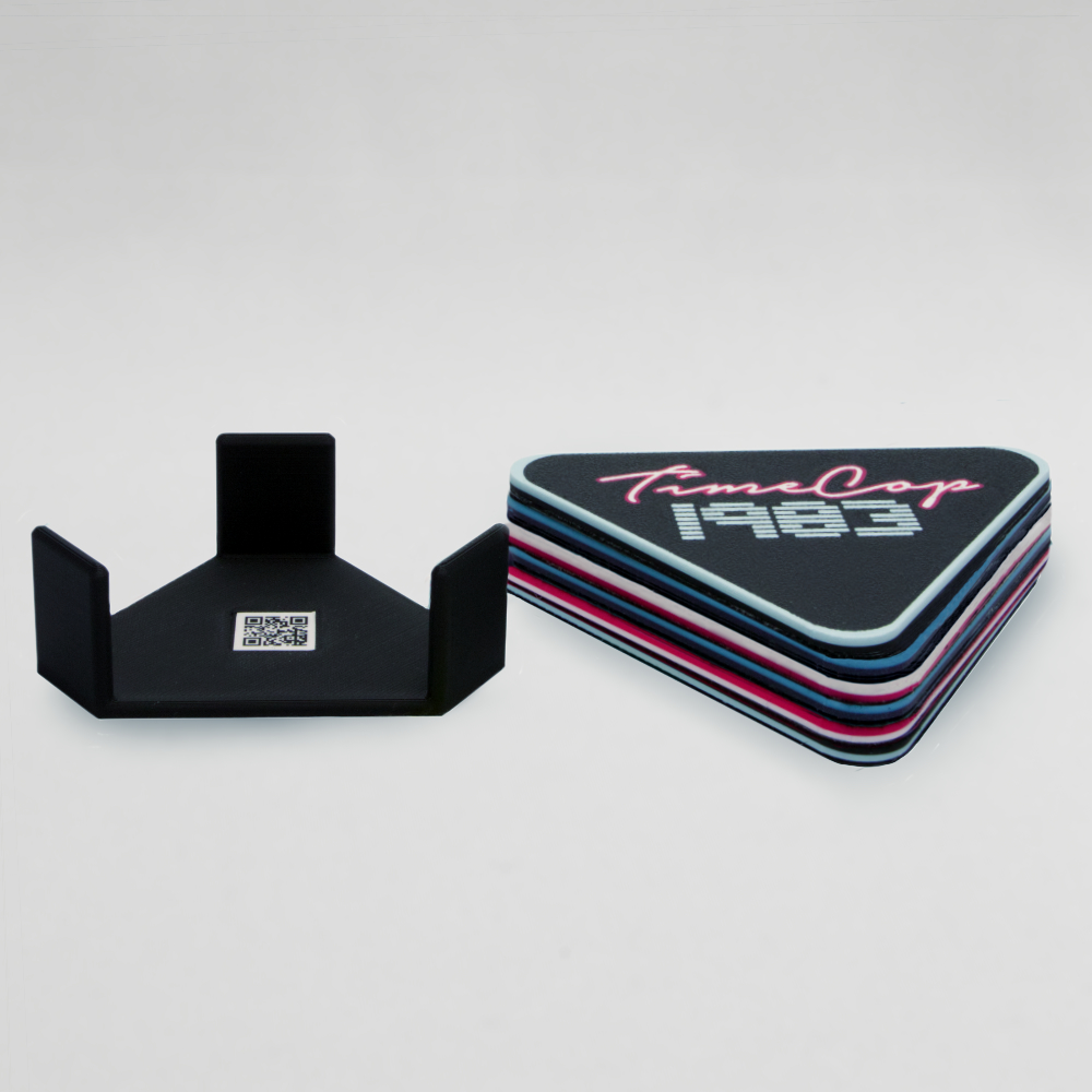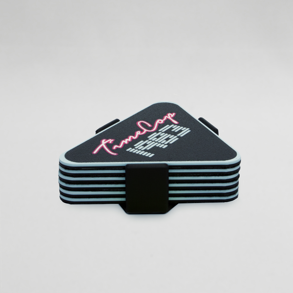 3D printed Timecop1983 triangle mixed coaster set of 6 different colors, with holder.